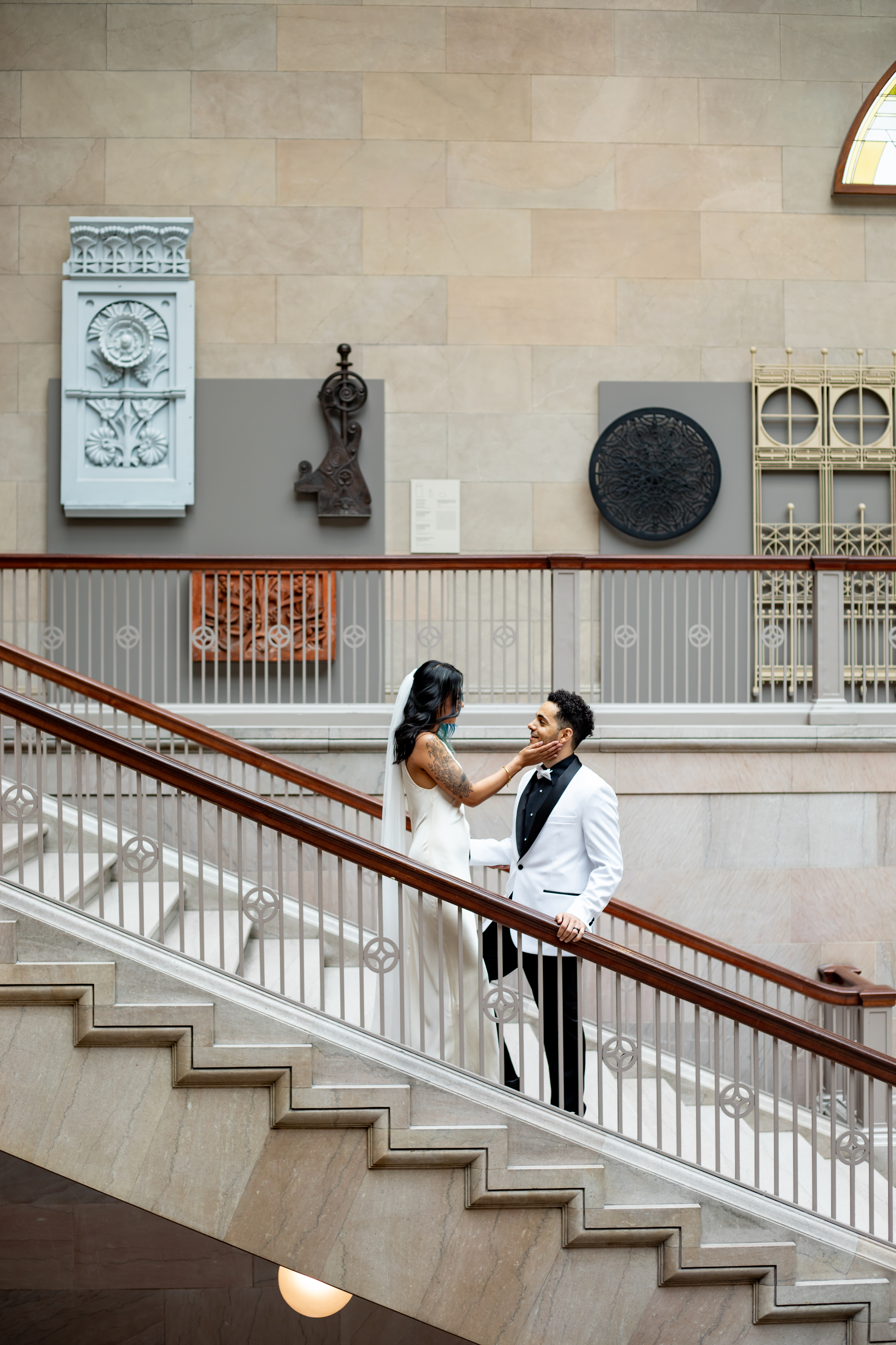 “…then we met our photographer, Erin, who is the most amazing photographer we have ever worked with. We met her first for our engagement shoot and we had such a fun day– even though things did not go as planned, we both knew at that moment that our wedding would be equally as fun in Erin‘s hands. She did not disappoint. We had to pivot the day of due to weather and she helped guide us, basically, through the day. We also did not know what we were doing, and she helped move things along. At one point one of our guests asked if the photographer was our friend we had only just met Erin for our engagement shoot but can easily say she is a friend. She went above and beyond expectations and her job expectations even helping clean up at the end of the night!”